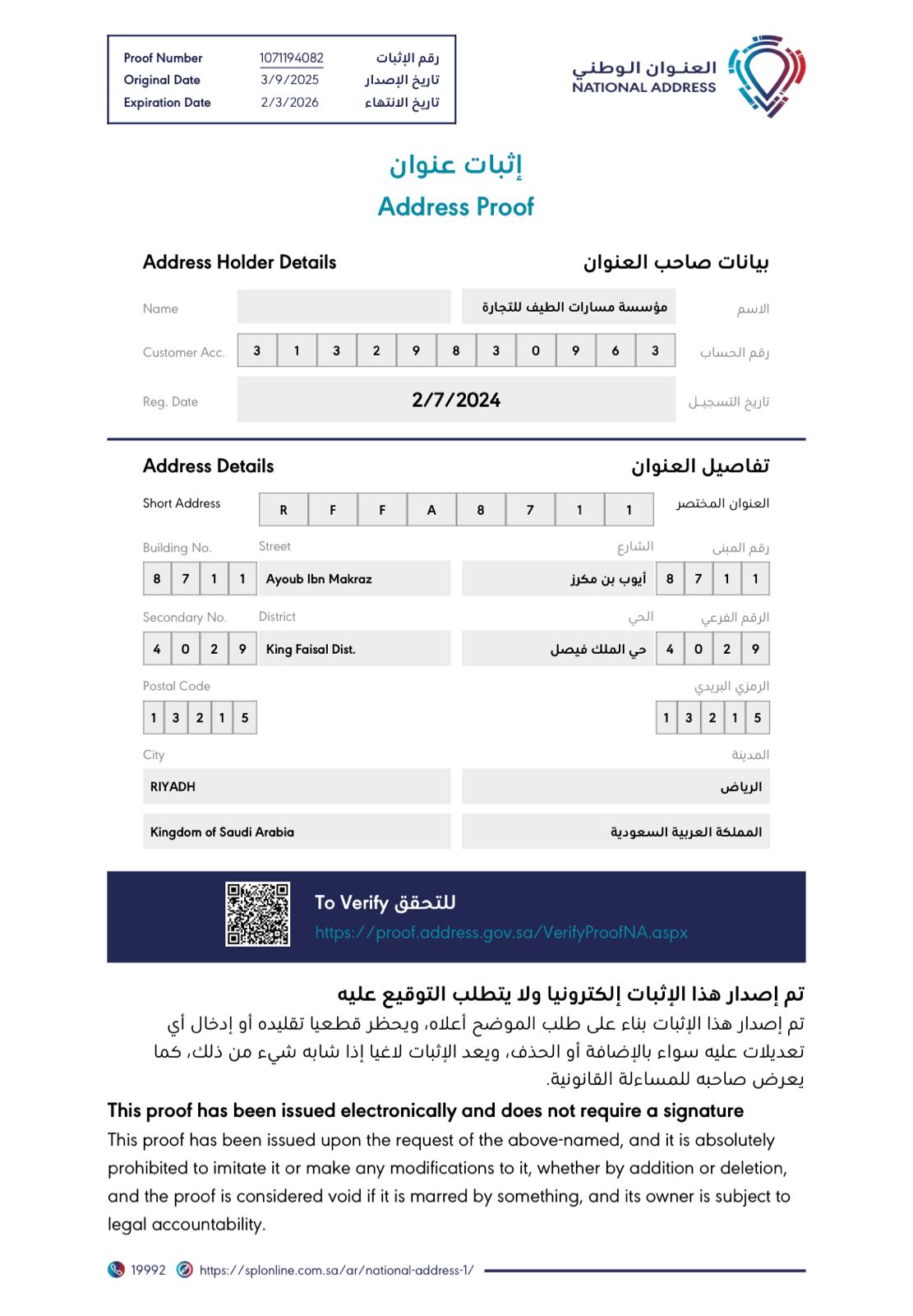 - العنوان الثاني:الرياض حي المربع الملك فيصل ابن عبدالعزيز سعود